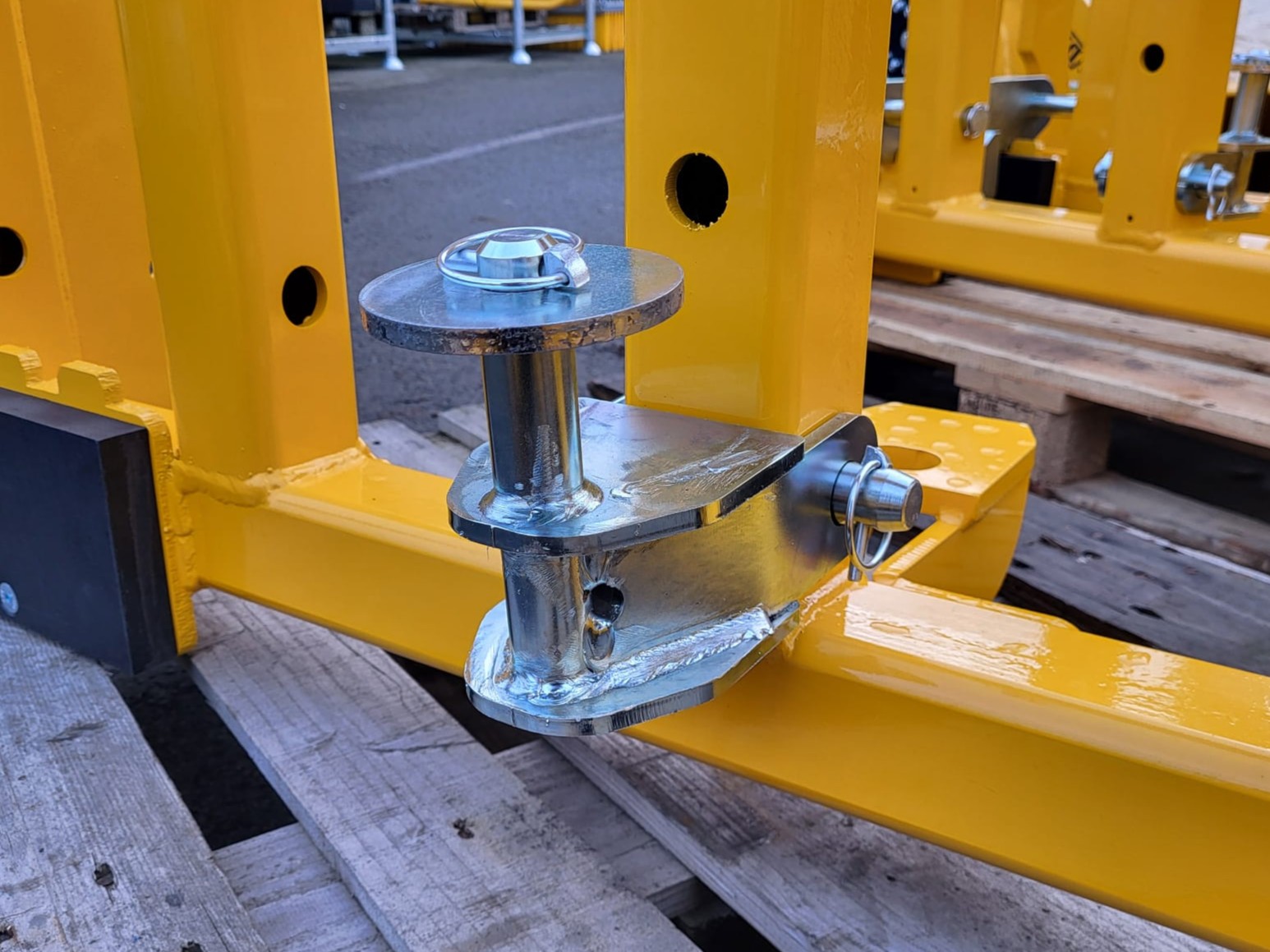 En option, des crochets peuvent être montés en bas pour déplacer des outils semi-portés ; ceux-ci peuvent être réglés en largeur pour s’adapter aux attelages de catégorie 1, 2 ou 3.